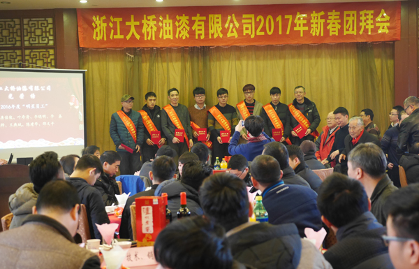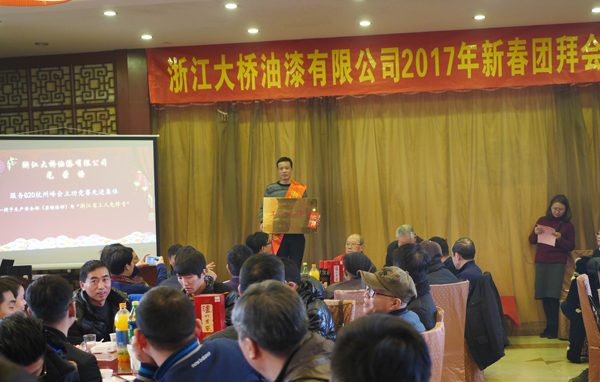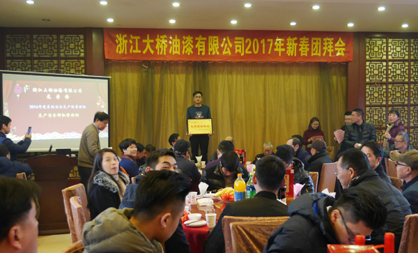 在团拜会上,公司总经理陈利权向全体职工对《2016年度公司工资履行情况》及2017年公司即将进行的工资改革方案等事项进行报告和说明。同时,会上还对在2016年度涌现的各类先进集体和个人进行了表彰:生产安全部机修班组被评为2016年度“系统安全生产优秀班组”、生产安全部(原制造部)被评为服务G20杭州峰会立功竞赛先进集体授予浙江省“工人先锋号”荣誉称号,陈敏、唐佳俊、叶寿清、李晓明、李鑫、赵凯锋、王燕斌、陈建华、邵义平等九名同志被评为公司2016年度“明星员工”。公司领导与部分厂级老领导一起为上述先进集体和个人颁发了奖牌与荣誉证书。
