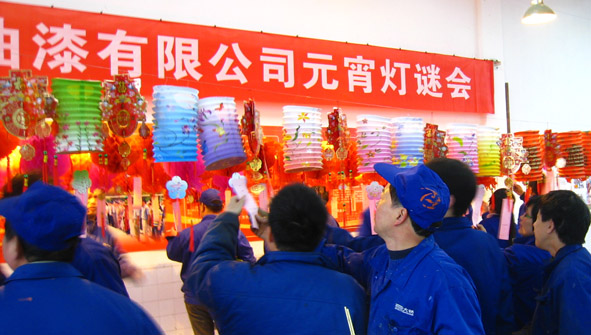 “祥龙吐瑞,喜气满堂”,元宵佳节,公司工会和团委联合举办了别开生面的的“壬辰龙年元宵灯谜会”,活动现场,布置了200多只形式各样的彩灯,满室的彩色缤纷,满堂的欢声笑语,员工们饶有兴趣的思索彩灯上悬挂的灯谜,时而低头苦思,时而商讨琢磨,时而喜笑颜开,欢呼雀跃。各种有趣的灯谜引得员工们兴趣盎然,整个灯谜会上秩序井然,一派欢乐祥和的节日气氛。