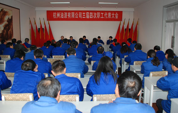 大会表彰了在2013年度生产、经营、技术、管理等岗位上涌现出的先进集体和优秀员工,他们有:(1)工业工会“工人先锋号”——制造部面漆工段调色组;(2)杭州市“工人先锋号”——质量保证部;(3)工业工会“职工创新工作室”——公司“功能性涂料创新工作室”;(4)系统“职业技能带头人”——阮建红、金庆强、张志国;(5)公司2013年度明星员工:阮建红、陈忠星、陆立峰、周源吉、杨瑞兴、高顺翔、张靖凯、陈敏、汪杰。
