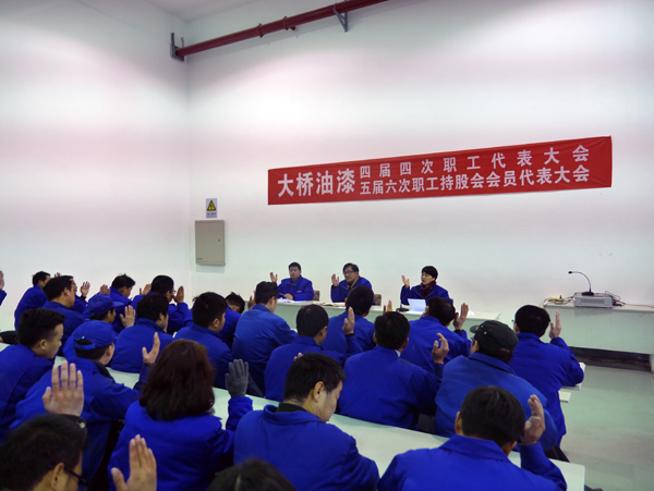 会上,职工代表们认真听取了工会主席傅震红作的《四届三次职代会主席团第一次联席会议决议》,听取并一致审议通过了总经理陈利权作的《2016年度公司工作报告》、《2016年工资协议履行情况报告》、《2017年工资集体协议(草案)》和工会主席傅震红作的《公司岗位晋升试行办法》(草案)》及大会决议。在完成四届四次职工代表大会全部议程后,在党委副书记、工会主席、职工持股会副理事长傅震红主持下召开了公司五届六次职工持股会会员代表大会。大会认真听取了职工持股会副理事长傅震红所作的五届八次职工持股会理事会会议纪要、一致审议通过了《2016年职工持股会工作报告》和大会决议。