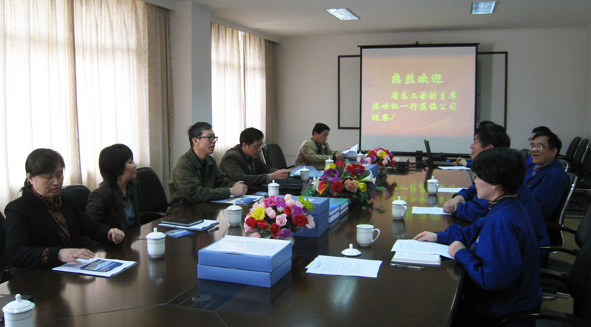 考察组一行在二楼会议室听取了工会主席傅震红关于公司申报“全国五一劳动奖状”开展的工作以及在安全健康、创新创优、和谐共赢等方面取得的成果汇报,并播放了PPT展示。公司党委书记、董事长包天雄就构建和谐企业、职工工资协商、股份分配、干部任用等方面作了重点介绍。