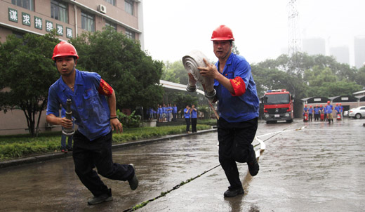 培训演练,提升技能。由生产管理部门牵头,各部门配合,结合企业实际情况,有针对性地开展了两项应急消防预案演练。一是在620,组织新进公司青年员工开展灭火演练。二是在626日,联合拱墅区消防大队,开展的紧急救援逃生和消防水带使用演练。通过演练检验和提高全员对突发事故的应变能力,增强员工安全意识及自我保护意识,使员工掌握应急救援运行程序和方法,提高义务消防队伍协调作战的能力。